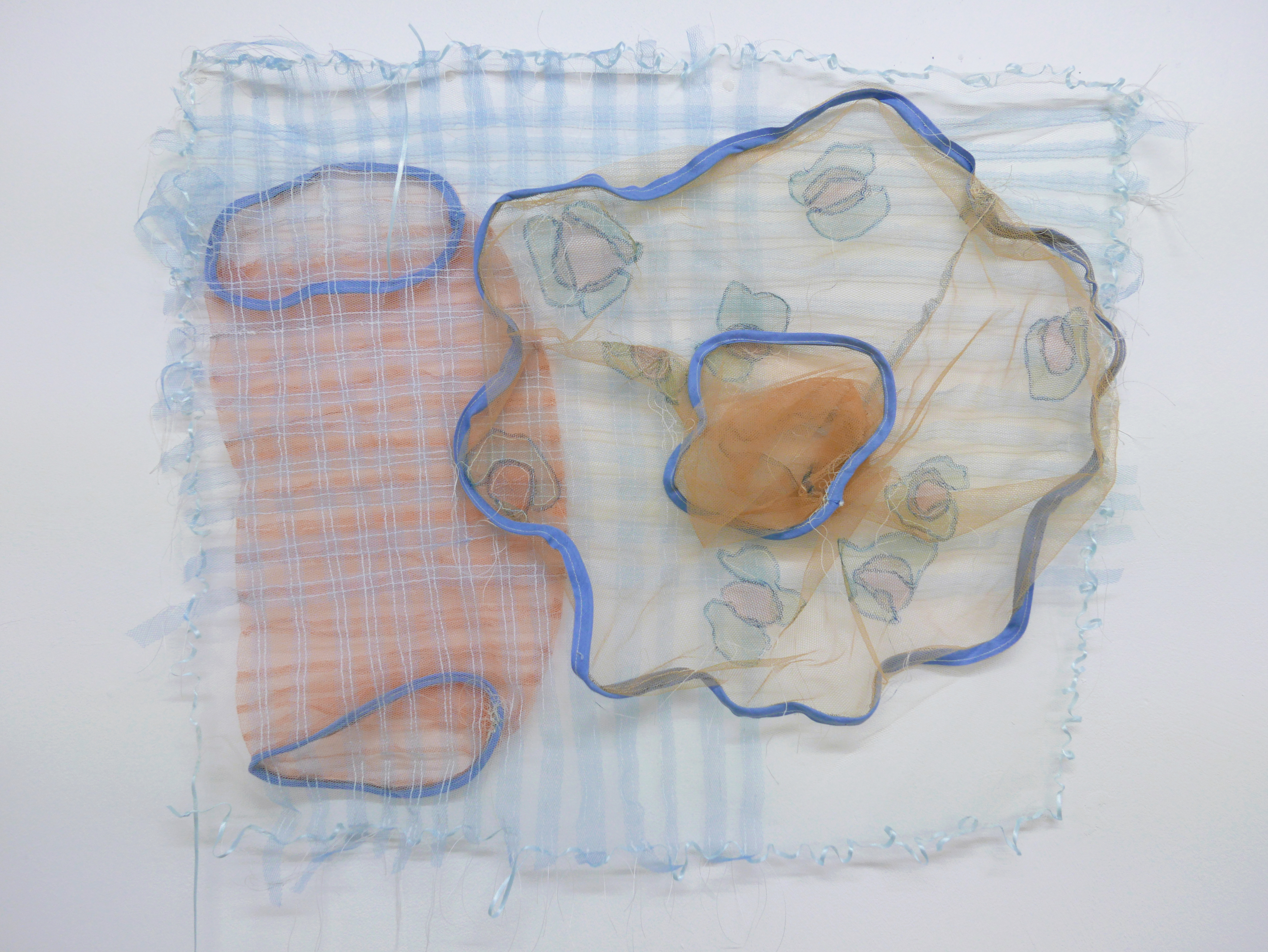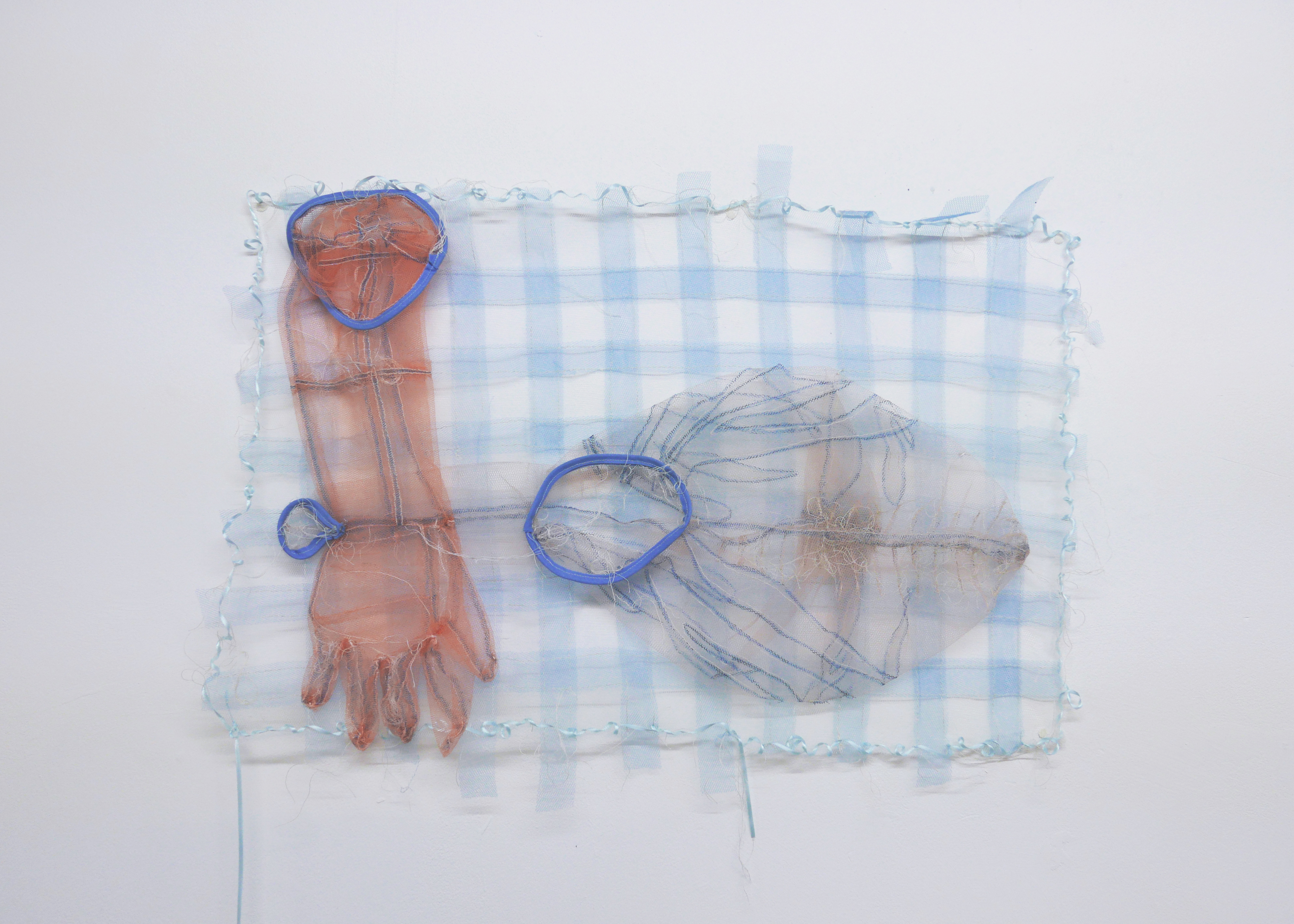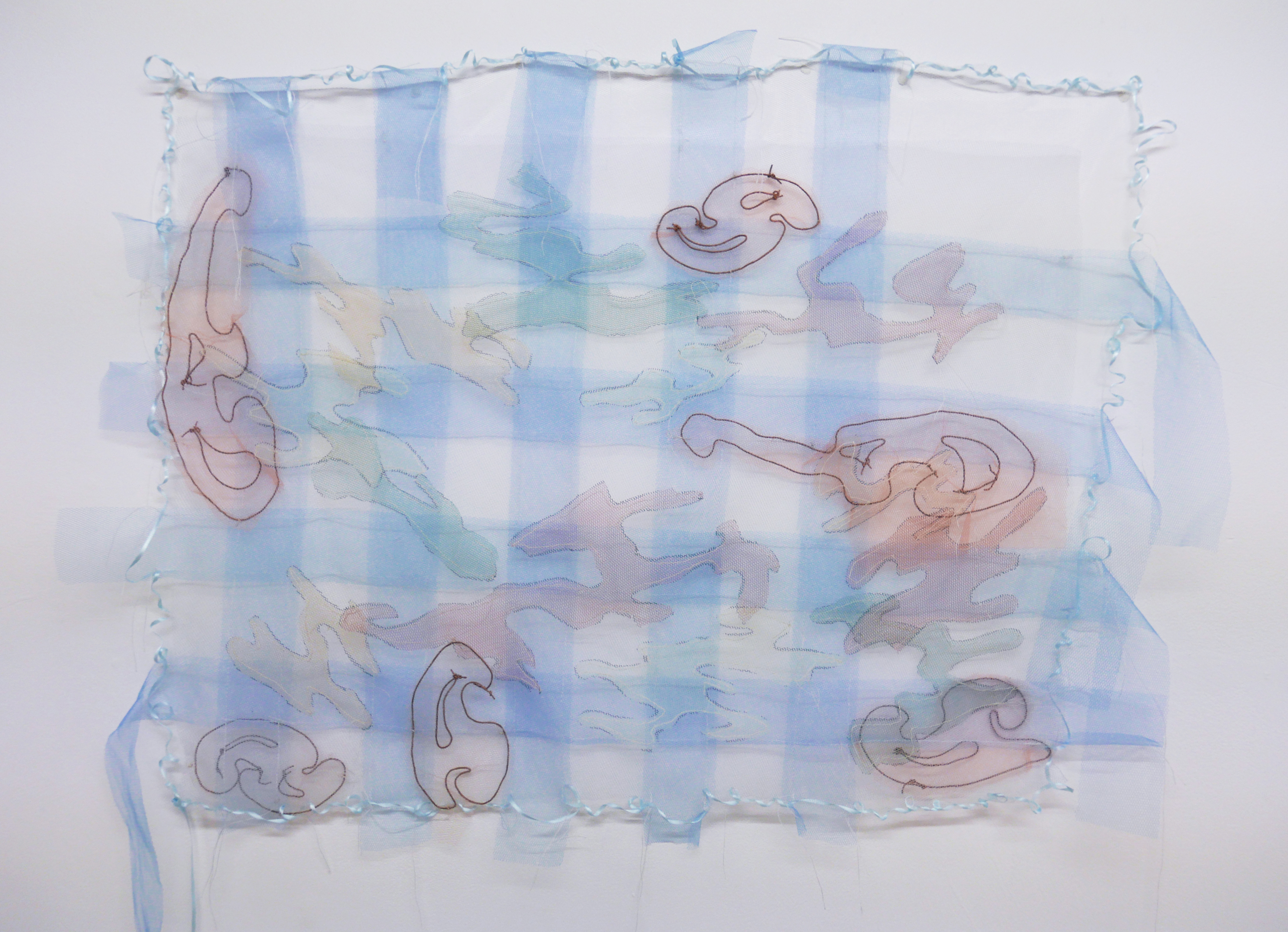 Tulle, textile pen, yarn, wire, ribbon
