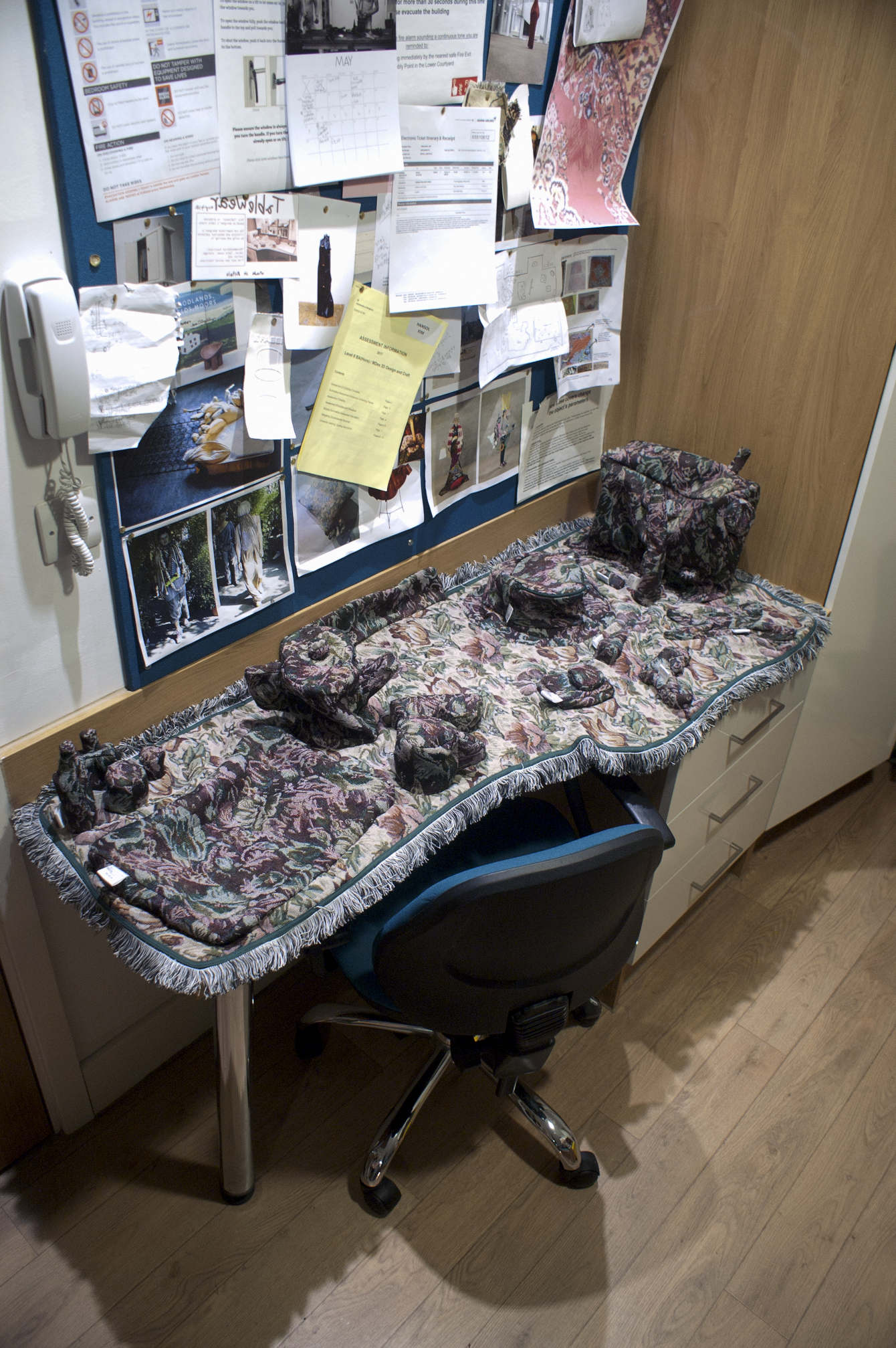I feel relieved when I cover my body with a duvet or blanket. Also, I need a space for meditation and need time to release my stress away from busy life. This cover consists of my personal belongings from my room which are carefully selected by me. I visualise my studio’s state that objects are spread on the table, kitchen and shower booth, Their random arrangement is decided by me unconsciously/consciously. Therefore, when I bring and use these outside, I feel that I’m surrounded by my belongings and feel secure.
